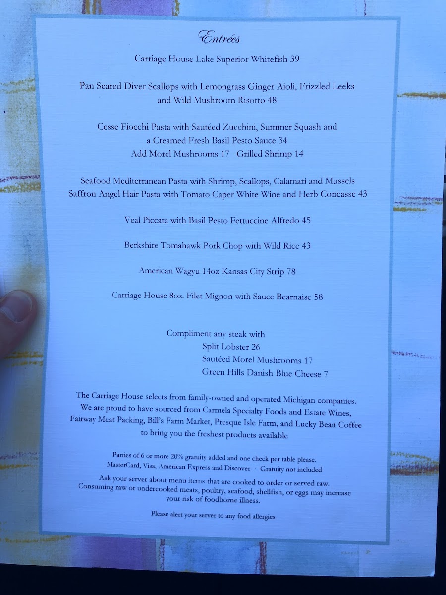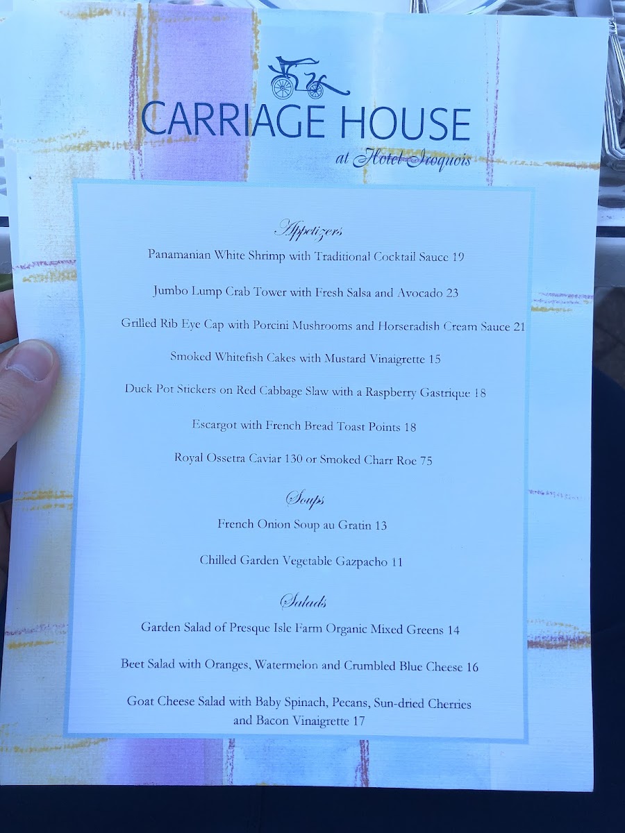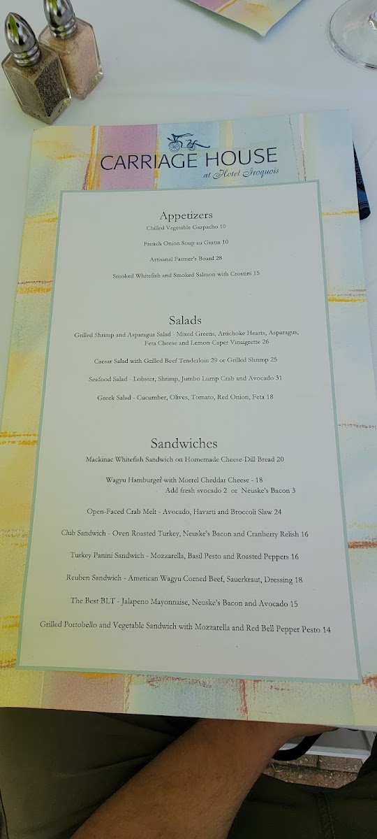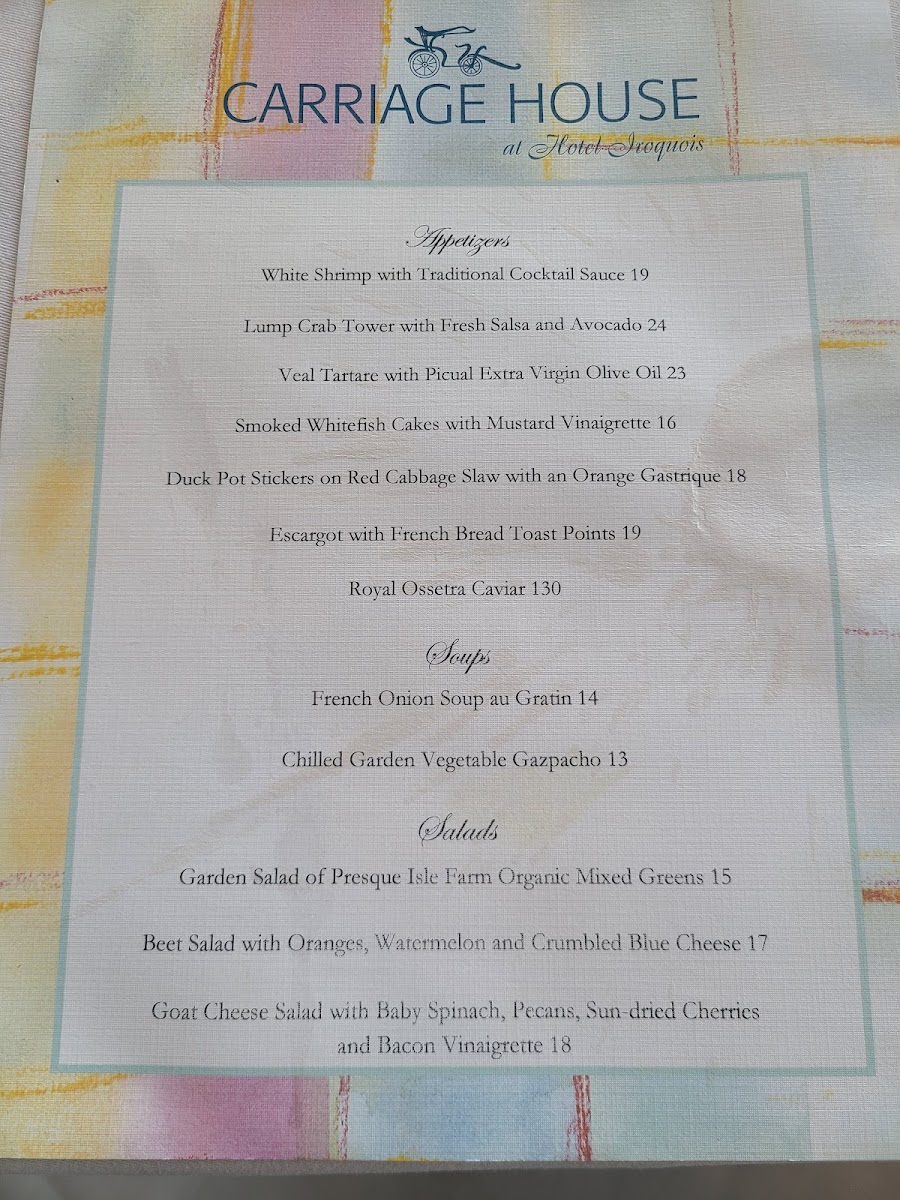 Welcome to Carriage House, a culinary gem nestled in the heart of Mackinac Island, MI. This charming establishment offers a delightful menu, perfect for food enthusiasts seeking both comfort and sophistication. Begin your culinary journey with the French Onion Soup Au Gratin, a warm, savory delight at $14, or experience the refreshing Chilled Garden Vegetable Gazpacho for $13.